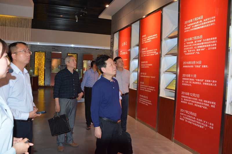 馬澤明一行參觀了商貿(mào)中心、酒文化館、美酒銀行、釀造車間、陳香廣場、鶴隱居等景點(diǎn),詳細(xì)了解公司生產(chǎn)狀況、稅收規(guī)模、安全環(huán)保及產(chǎn)品質(zhì)量。在商貿(mào)中心,李良詳細(xì)講解了黃鶴樓酒業(yè)“135”發(fā)展戰(zhàn)略和多元化的產(chǎn)品體系。